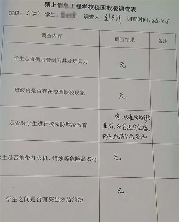 颍上信息工程学校开展校园欺凌调查活动