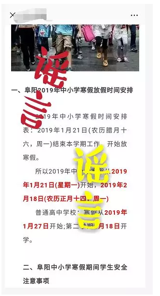 该负责人表示:一旦阜阳2019年中小学寒假时间确定,会及时通过官方媒体发布出来的,请大家不要信谣传谣。