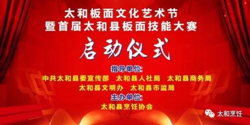 2018年5月23日下午,由太和县委宣传部,太和县人社局、太和县市监局、太和县商务局,太和县文明办指导,太和县烹任人协会主办的首届“太和板面文化艺术节”活动启动仪式在安徽名珍食品有限公司院内太和县烹饪协会会议室举行。各相关单位负责人、太和知名板面企业,各餐饮单位负责人、厨师代表,以及太和广播电视台、太和县烹饪协会、板面专业委员会,太和摄影艺术家协会等新闻媒体百余人参加启动仪式。