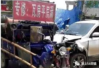 3日中午13时许,颍东区袁寨派出所门前,一轿车司机沿阜口路由西向东行驶时撞断路边护栏,护栏飞到路边。护栏被撞后表示自己很慌,更慌的是路中间骑摩托三轮车的驾驶员。小轿车撞完护栏后失控进入对向车道,再次撞上行驶中的三轮车。白色轿车前方有明显的撞击痕迹,幸运的是,三轮车上的人员都没事!