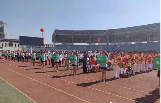7月17日上午,阜阳市第三届残疾人运动会在太和县体育中心隆重开幕,阜阳市政府副市长、市残联主席王显义,市残联党组书记魏宏伟,市文广新体局副局长苏锋,市公安局副局长万传红,市卫计委副主任都凤仁,市广播电