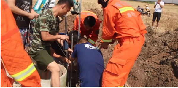 6月14日上午十点多,阜阳市颍泉区闻集镇,一名一岁半的女童不慎坠入田间机井中。接到求助后,辖区消防、公安和蓝天救援队很快赶到了现场。在现场,只见女童坠楼田边一处直径约40公分的机井中。由于井口狭窄,女
